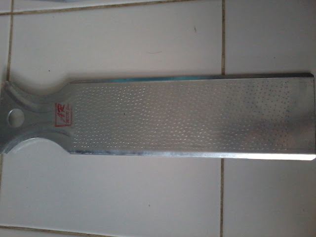 - Pisau pengupas kulit daging buah. Alat ini digunakan untuk mengupas kulit daging buah kelapa.